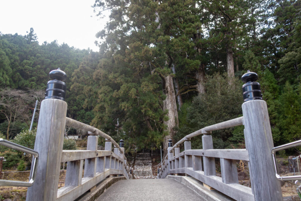 駐車場から本殿へ向かう。橋を渡れば、空気が変わります