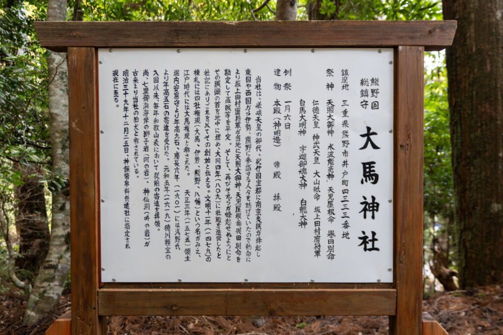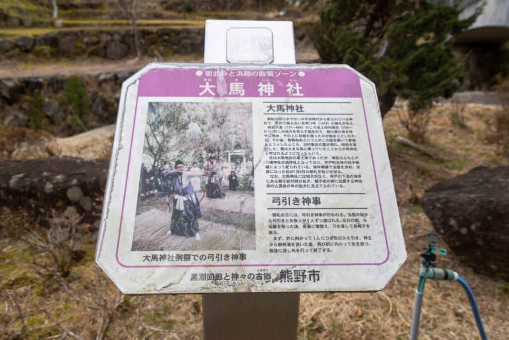 もう一つ「おっ」と二度見してしまった記述が、大馬神社には狛犬がなく、七里御浜の神仙洞(雌岩)と獅子岩(雄岩)が狛犬とされるという話。海側の名物スポットが大馬神社へと繋がっている──とても熊野らしいスケール感です。